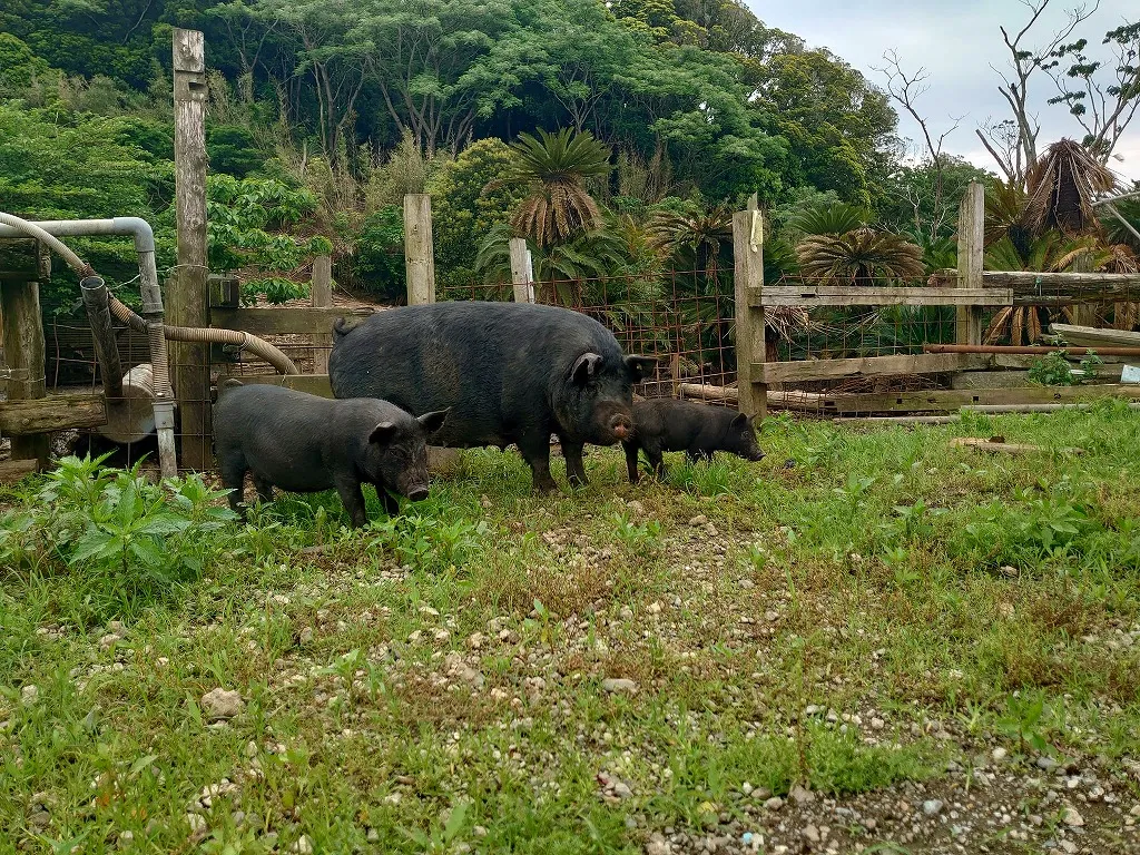 ジャングルファームでは、山の中を探検中に出会った動物へ餌をあげられる「エサやり体験」をご用意しております。 人懐っこいアグーたちに間近で餌やりができる、ほかでは体験できない特別な時間をお過ごしください。 ※エサやり体験は別料金となっております。